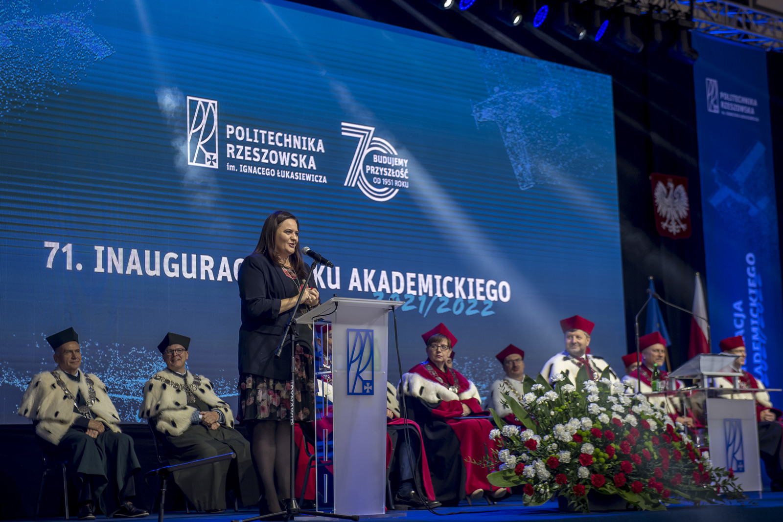 „Inaugurujemy 71. rok istnienia Politechniki Rzeszowskiej im. Ignacego Łukasiewicza, dla wielu tu obecnych „naszej Uczelni”. Instytucji, która od dziesiątków lat pełni rolę nie tylko szkoły inżynierów, lecz także wiodącego ośrodka badawczego, w której powstają pomysły, realizowane są projekty badawcze wdrażane w przemyśle. Jest to efekt wieloletniej pracy i zaangażowania ludzi Politechniki – tysięcy pracowników byłych i obecnych, zatrudnionych w różnych grupach oraz setki tysięcy studentów i absolwentów. Każdy z nich zostawił tu jakiś ślad” – tymi słowami JM Rektor prof. dr hab. inż. Piotr Koszelnik rozpoczął swoje przemówienie.