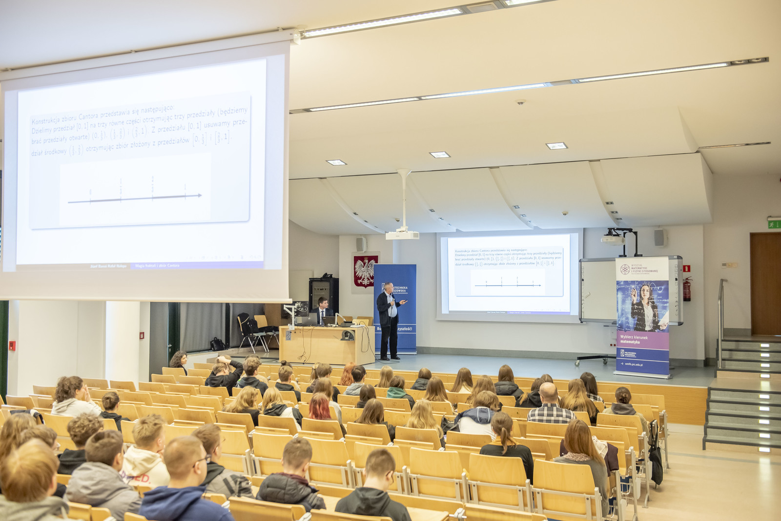 Podczas obu dni zgromadzoną młodzież uroczyście powitali rektor Politechniki Rzeszowskiej prof. dr hab. inż. Piotr Koszelnik oraz prorektor ds. kształcenia dr hab. Iwona Włoch, prof. PRz. Władze dziekańskie WMiFS w krótkiej prezentacji przedstawiły kierunki studiów prowadzone na wydziale oraz perspektywy zatrudnienia absolwentów. Inauguracje Dni Otwartych uświetniły występem artystycznym studentki kierunku matematyka Katarzyna Biela i Klaudia Bukała. Młodzież miała okazję uczestniczenia w wykładach i warsztatach, które zostały podzielone na trzy główne panele związane z kierunkami studiów: inżynierią i analizą danych, inżynierią w medycynie oraz matematyką. Panele zostały uzupełnione o pokazy z fizyki, a także o zwiedzanie wydziałowych laboratoriów oraz biblioteki. Wykłady, warsztaty i pokazy prowadzili nauczyciele akademiccy prowadzący zajęcia na wymienionych kierunkach, lekarze oraz pracownicy zaprzyjaźnionych dwóch firm medycznych ImplantCast i STRING, jak również studenci kół naukowych: Machine Learning, X-med oraz Foton. Podczas Dni Otwartych aktywny udział wzięli studenci z Wydziałowego Samorządu Studenckiego oraz studenci WMiFS, którzy chętnie opowiadali uczniom o studiach w trakcie zwiedzania wydziału.