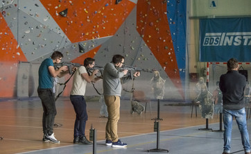 Studenci wzięli udział w pokazie sprzętu wspinaczkowego i alpinistyki górskiej. Poznali też możliwości elektronicznego zestawu treningowego Aktyn z pneumatycznym karabinem treningowym Beryl.