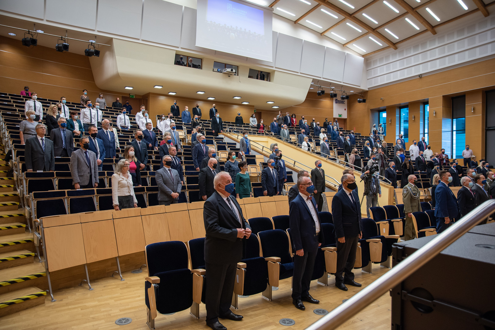 Ze względu na sytuację epidemiczną uroczystość inaugurująca jubileuszowy 70. rok akademicki na naszej uczelni odbyła się w warunkach zaostrzonego reżimu sanitarnego z zachowaniem wszelkich środków ostrożności. Pracownicy, studenci i sympatycy naszej uczelni mogli w niej uczestniczyć w relacji na żywo transmitowanej na kanale YouTube, uczelnianym Facebooku i na antenie Akademickiego Radia i Telewizji Centrum.