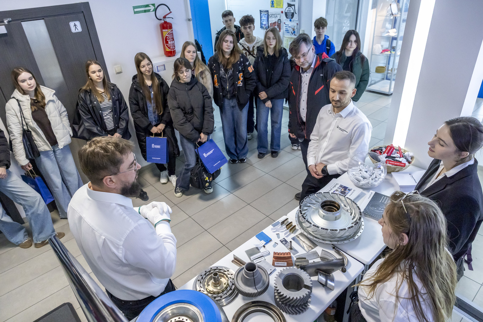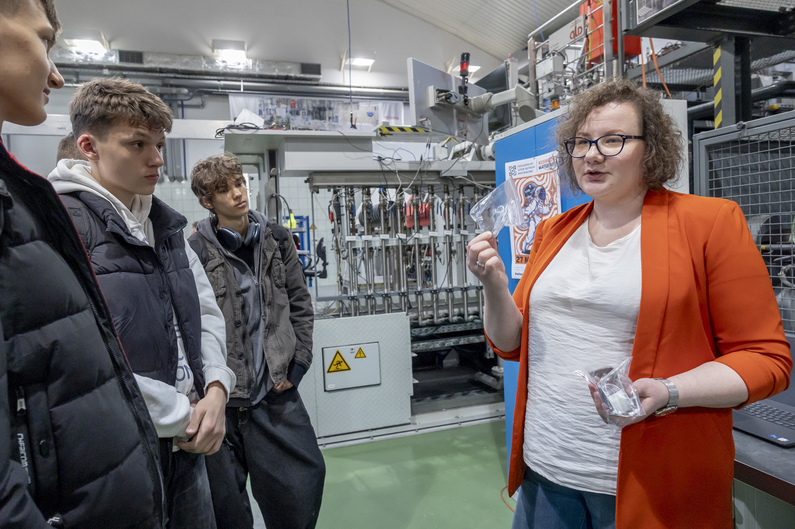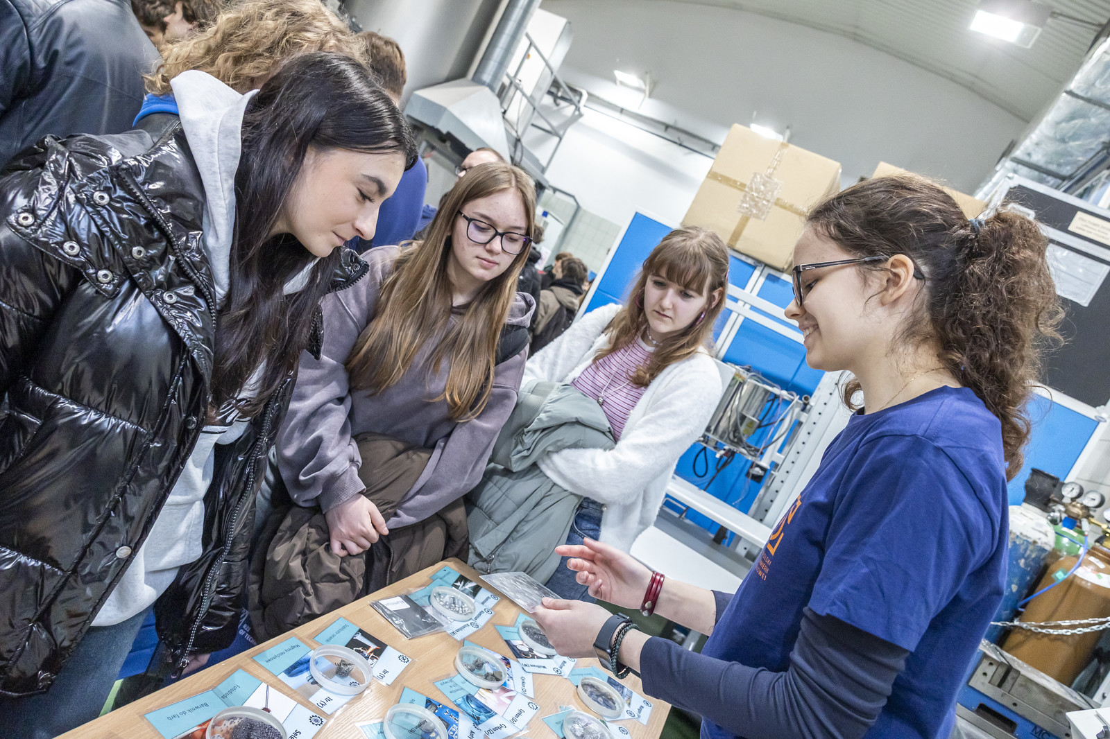 W drugiej części wydarzenia młodzież uczestniczyła w warsztatach i pokazach laboratoryjnych zorganizowanych w Katedrze Nauki o Materiałach na Wydziale Budowy Maszyn i Lotnictwa oraz Laboratorium Badań Materiałów dla Przemysłu Lotniczego. Uczestnicy mieli okazję zapoznać się z wybranymi technologiami i metodami badawczymi, takimi jak proces nawęglania, technologie laserowe, nowoczesne metody wytwarzania powłok (EB-PVD i PS-PVD), mikroskopia świetlna, a także działalnością studenckiego koła naukowego AMSA (Aerospace Materials Students’ Association).