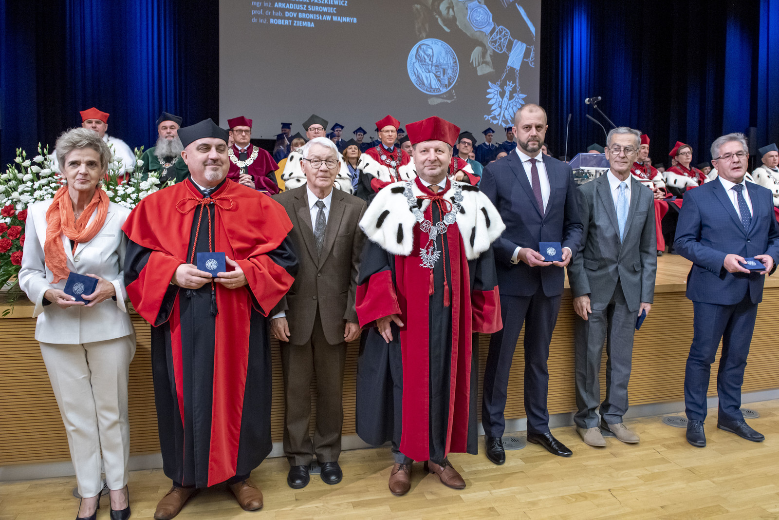 Podczas uroczystości wręczono również odznaczenia państwowe. Srebrne Krzyże Zasługi otrzymało 7 pracowników, a Brązowe Krzyże Zasługi – 15 pracowników uczelni. Medalem Złotym za Długoletnią Służbę zostało odznaczonych 15 osób, 18 osób – Medalem Srebrnym za Długoletnią Służbę i 7 osób Medalem Brązowym za Długoletnią Służbę. 21 pracowników naszej uczelni zostało odznaczonych Medalem Komisji Edukacji Narodowej, 6 osób otrzymało medal „Zasłużonym dla Politechniki Rzeszowskiej”, a jedna Srebrny Medal „Za zasługi dla obronności kraju”. Tę uroczystości poprowadził prorektor ds. studenckich prof. dr hab. Grzegorz Ostasz (relację z tej części uroczystości zamieścimy w osobnej aktualności).