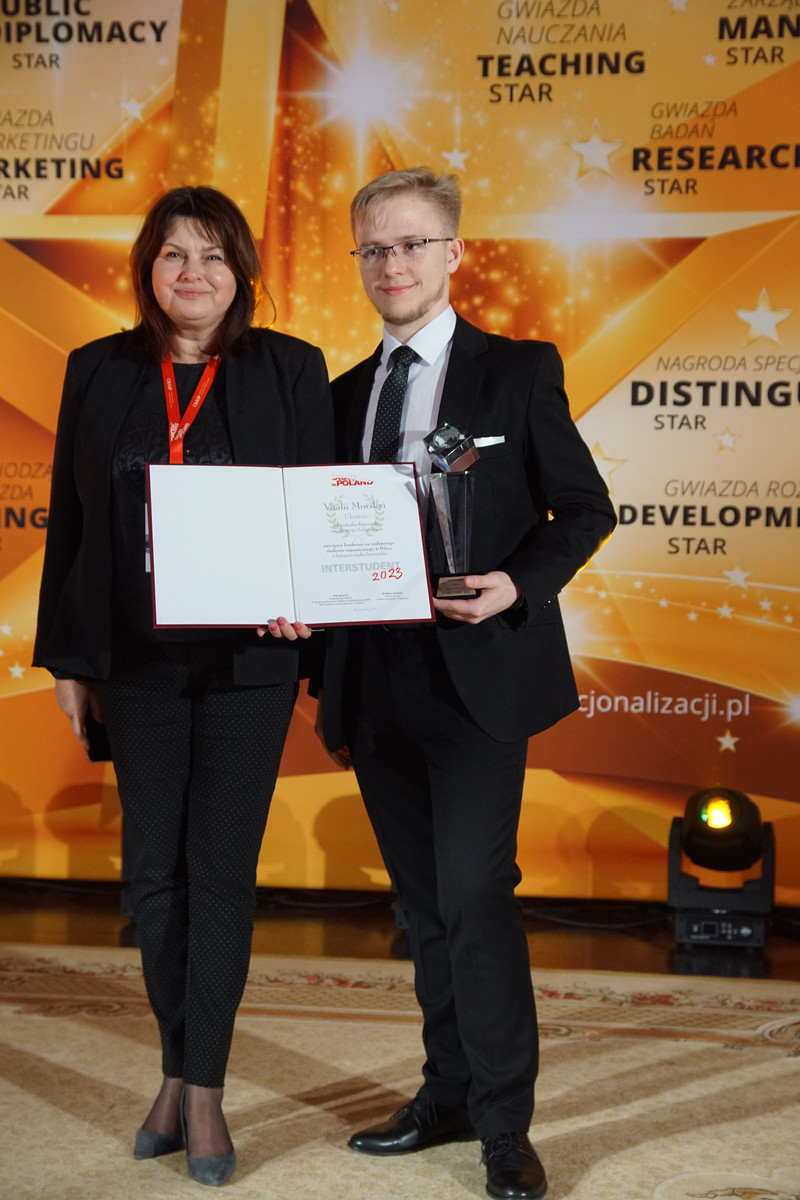 Pochodzący z Ukrainy Vitalii Morskyi, student kierunku inżynieria i analiza danych na Wydziale Matematyki i Fizyki Stosowanej Politechniki Rzeszowskiej został laureatem XIII edycji Konkursu INTERSTUDENT 2023 na najlepszego studenta zagranicznego w Polsce w kategorii studia licencjackie. Wręczenie nagród odbyło się podczas uroczystej gali w ramach konferencji „Studenci zagraniczni w Polsce”.