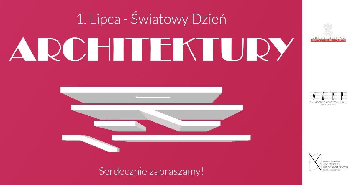Już w sobotę 1 lipca 2023 r. na Rynku w Rzeszowie odbędzie się Światowy Dzień Architektury. Zapraszamy do udziału w wydarzeniu, które przybliży świat architektury i pozwoli spojrzeć na Rzeszów z zupełnie nowej perspektywy. Wydarzenie organizowane jest przez Koło Naukowe Architektury Miejsc Społecznych działające na Wydziale Budownictwa, Inżynierii Środowiska i Architektury Politechniki Rzeszowskiej wraz z SARP oddział Rzeszów i Podkarpacką Okręgową Izbę Architektów RP.
